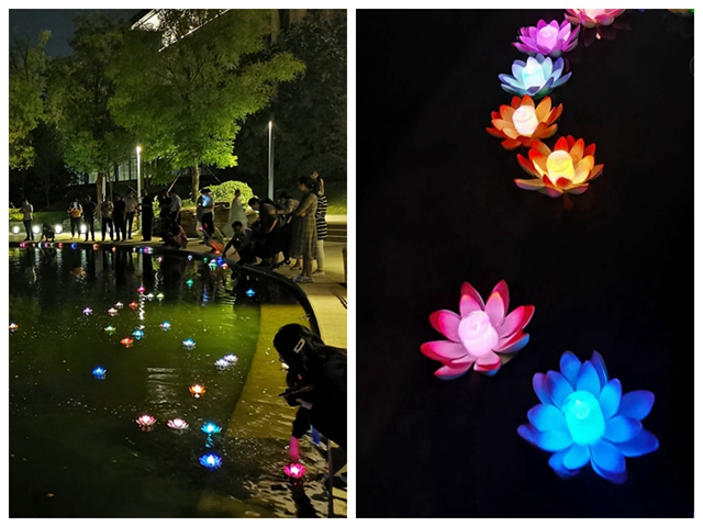 最后,鄧總帶領(lǐng)大家移步桂湖湖畔,許下心中的愿望,點(diǎn)亮載滿各自心愿的花燈。伴隨著悠揚(yáng)的薩克斯旋律,小小一盞花燈隨著碧波浪蕩而行,載滿了每個(gè)人的心愿,承載著中國(guó)文化的律動(dòng),更描繪著鴻寶人于幸福明天的向往和濃濃的家國(guó)情懷底色。