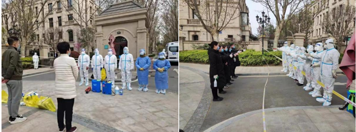 面對突如其來的封控,小區(qū)業(yè)主一開始充滿了不安、驚慌、還夾雜著些質(zhì)疑和抱怨,外圍工作人員同樣馬不停蹄連軸作戰(zhàn)。他們耐心安撫業(yè)主恐慌情緒,真誠服務(wù)給業(yè)主吃下“定心丸”。他們頂著寒風(fēng)在現(xiàn)場維護(hù)秩序,在24小時內(nèi)配合疾控部門開展全面徹底的環(huán)境消殺,逐家逐戶完成信息登記和人員排查,在72小時內(nèi)完成三天兩檢400余人次。當(dāng)?shù)弥^(qū)內(nèi)部有三名裝修工人滯留時,項目團(tuán)隊主動為其提供被褥食物,幫助其安心度過隔離期,彰顯出“用愛匯真情”的人文關(guān)懷。
